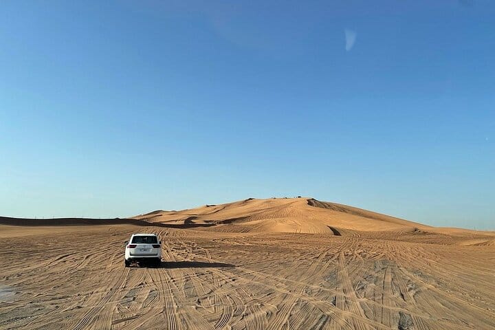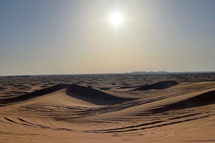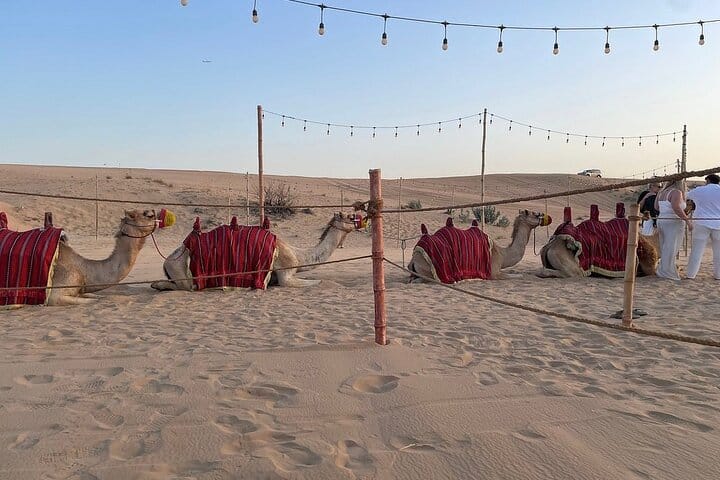 Embark on an epic journey in Dubai's desert during this half-day safari tour that promises a wild ride of camel riding, belly dancing, and live shows. Satisfy your adventurous side and dazzle your senses with views of the sunset as you engage in exciting activities like dune bashing, Tanura dance, sandboarding, and fire shows. Capture picture-perfect photos, savor a delicious barbeque dinner, and revel in traditional entertainment in the comfort of a desert camp.